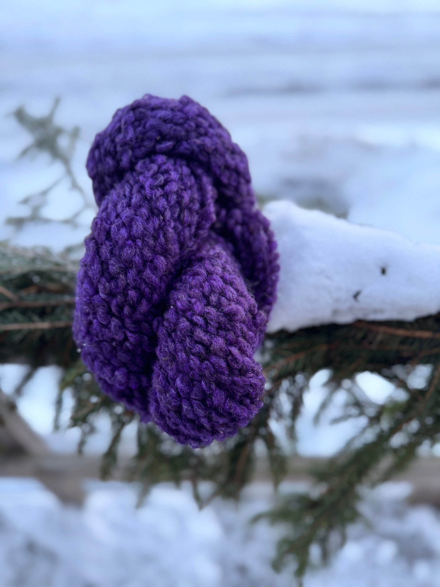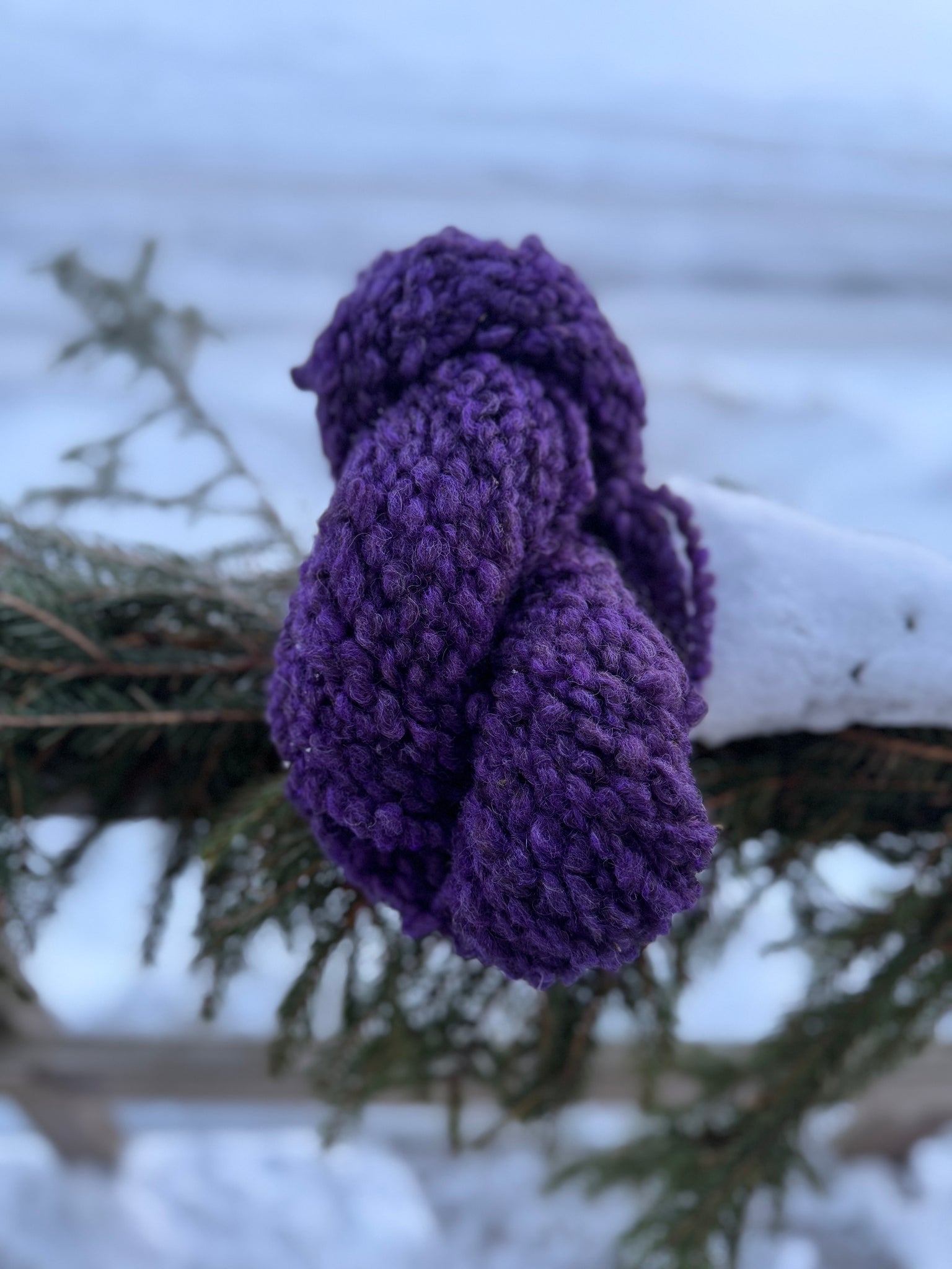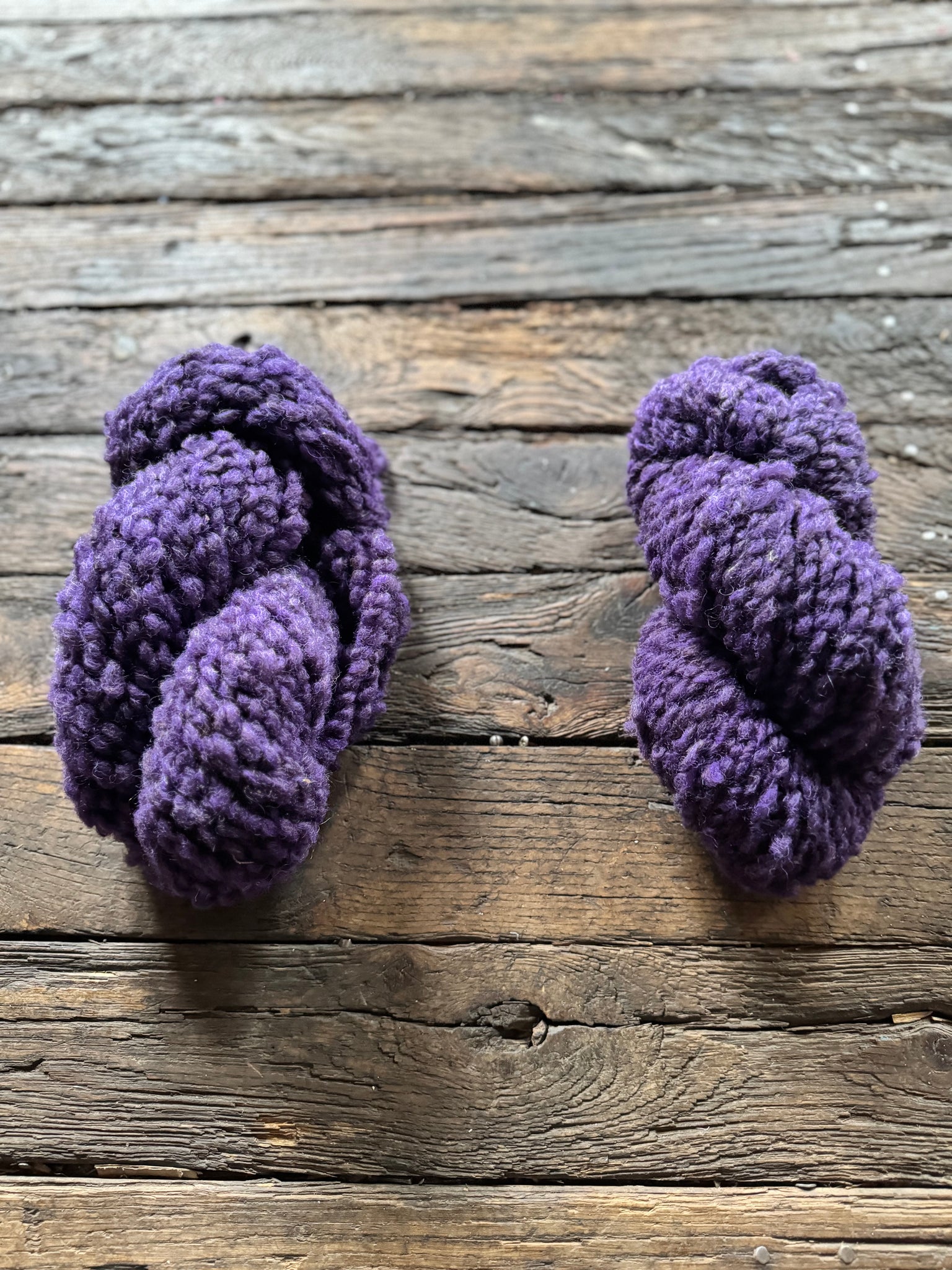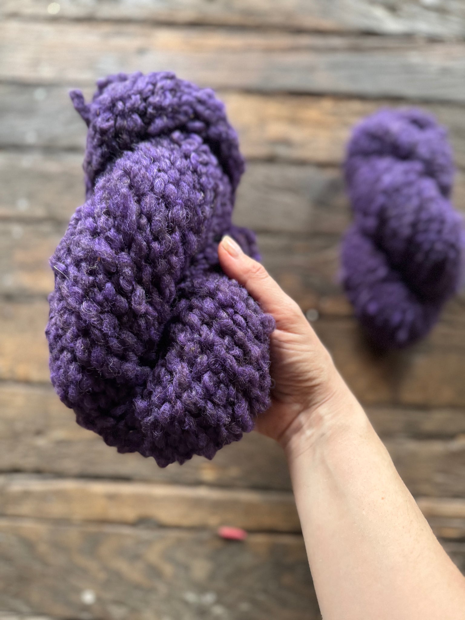 In Varv, this colour gains additional presence through the yarn’s distinctive structure. The textured twist allows the violet to shift subtly across the surface, revealing quieter tonal variation within the depth of the purple. It is bold without being loud — expressive, grounded, and organic.